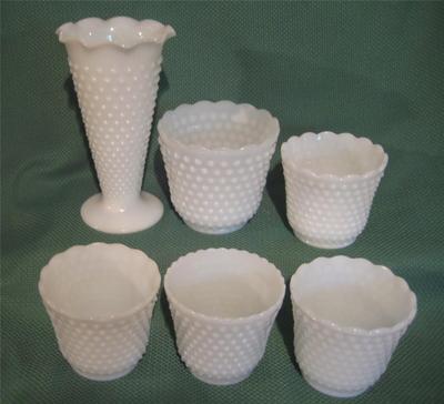 Title (ebay affiliate link): LOT OF 6 PIECES VINTAGE MILK GLASS ..HOBNAIL..ANCHOR HOCKING..LARGE VASE ++