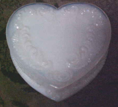 VTG DEGENHART MILK WHITE ORNATE HEART TRINKET JEWELRY BOX-stamped with D