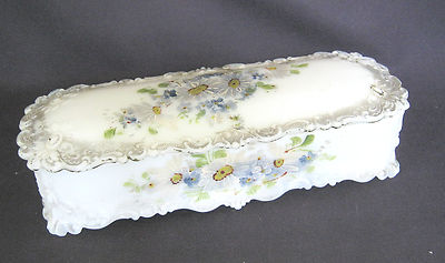 ANTIQUE MILK GLASS LADIES DRESSER BOX HAND PAINTED DECORATION