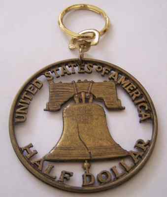 Title (ebay affiliate link): HALF DOLLAR CUT OUT FOR NECKLACE OR KEY CHAIN VINTAGE, 3" DIAMETER