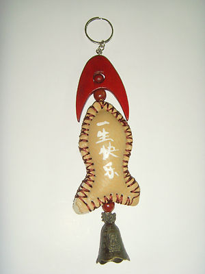 Title (ebay affiliate link): Vintage Asian Keychain Ring charm Woody Fish Engraved Bell Pendant