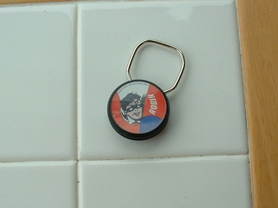 Title (ebay affiliate link): Vintage Batman & Robin 2 Sided Snap Off Keychain Key Ring Black Rim