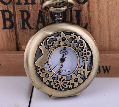 Title (ebay affiliate link): Vintage Bronze Alice In Wonderland Mr Rabbit & Key Pocket Watch Necklace Chain