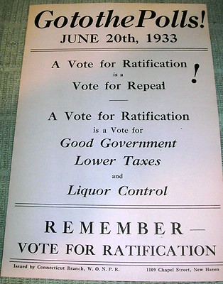Title (ebay affiliate link): Small 1933 broadside: Go To The Polls! & REPEAL PROHIBITION. Connecticut.