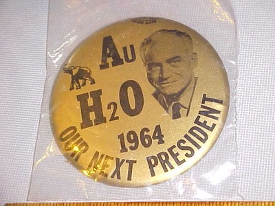 Title (ebay affiliate link): Au H2O BARRY GOLDWATER Political President Pinback Pin Button 3.5" Sealed!