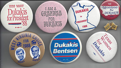 Title (ebay affiliate link): 1988 MIKE DUKAKIS & LLOYD BENTSEN POLITICAL CAMPAIGN BUTTON COLLECTION - C