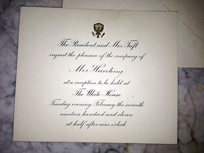 WILLIAM H. TAFT WHITE HOUSE INVITATION FEBRUARY 7th 1911