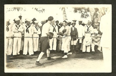 Title (ebay affiliate link): 1912 RPPC Sailors of the USS NASHVILLE Amateur BOXING Black Natives Watching