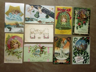 9 Vintage Postcards Christmas Greetings Beautiful Art Incl Children