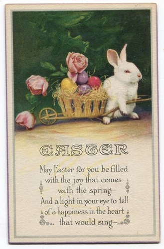 Title (ebay affiliate link): 060613A Lovely Antique Easter Postcard White Bunny Pullilng Egg Cart