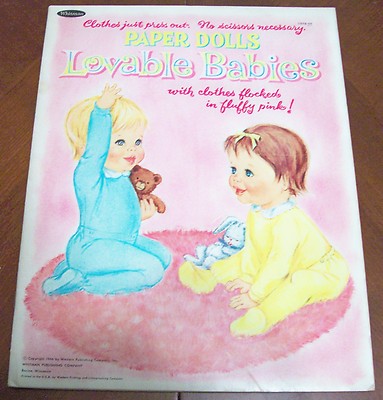 Title (ebay affiliate link): 1966 Lovable Babies Paper Dolls: 2 Dolls, 23 Outfits Some Pink Flocked & 6 Hats