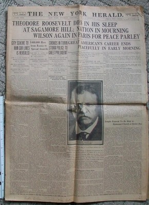 Title (ebay affiliate link): 1919 NEW YORK HERALD NEWSPAPER THEODORE ROOSEVELT DIES