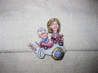 Title (ebay affiliate link): Hillary & Bill Clinton 2016 Presidential Campaign Motorcycle Novelty Pin