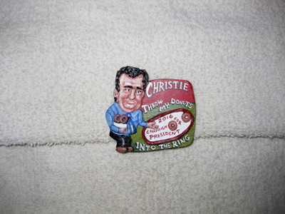 Title (ebay affiliate link): NJ Gov. Chris Christie Throw My Donuts Into 2016 Presidential Campaign Pin