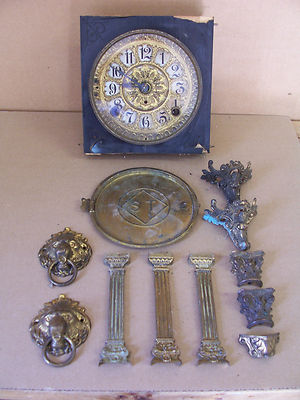 Vtg Antique Seth Thomas Mantle Clock Parts Movement Dial Face Bezel Lion Ends