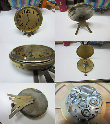ANTIQUE AUTO DASHBOARD CLOCK 8 DAY CLOCK SWISS BEVELED GLASS WORKS