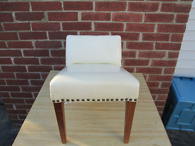Title (ebay affiliate link): RARE GLOUCESTER LEG STOOL CO. GOUT STOOL WHITE LEATHER MID-CENTURY MODERN