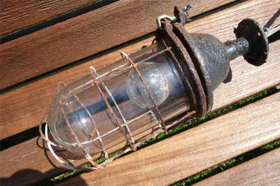 Title (ebay affiliate link): Vintage Cat Iron Caged Lamp Industrial Lobby Light Salvaged Rustic Chic c.1940's
