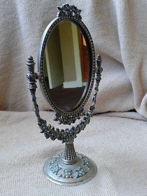 Title (ebay affiliate link): VINTAGE STYLE MIRROR/GREEN ENAMEL/CLEAR STONES FOR DRESSER/DRESSING TABLE TOP