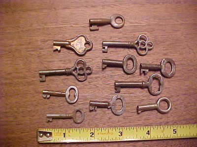 Title (ebay affiliate link): 11 Antique Hollow Barrel Keys Furniture Jewlery Box Cabinet Nice Lot
