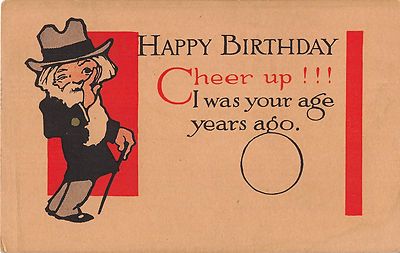 Title (ebay affiliate link): Old Comic Birthday Motto Postcard With Old Man - No. 1514 - Cheer Up!