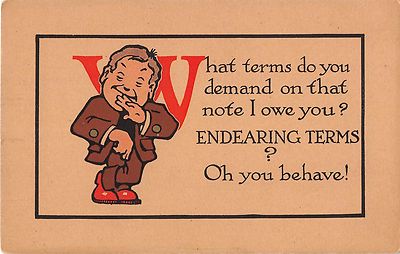 Title (ebay affiliate link): Old Comic Motto Postcard of Man in Suit Chuckling - Oh You Behave! - No. 1582