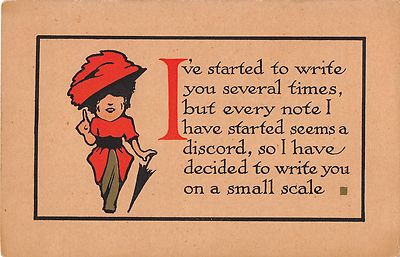Title (ebay affiliate link): Old Comic Motto Postcard-Fashionable Lady in Hat-No. 1587-I've Started To Write