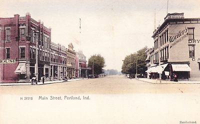Title (ebay affiliate link): MAIN STREET. PORTLAND, IND.REAL PHOTO HANDCOLORED VINTAGE POSTCARD UNUSED