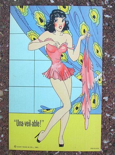 Title (ebay affiliate link): Vintage Curt Teich Risque Pinup Postcard Una-veil-able Unused 1940's Wonderful !