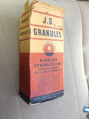 Title (ebay affiliate link): Antique 1920'S Jd Granules Alkaline Effervescent Medicine Bottle Box Union Drug