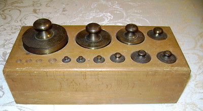 Title (ebay affiliate link): Antique Set of Weights For Vintage Apothecary Balance Scale & Wooden Holder Gram