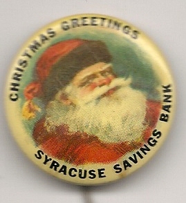 Santa Claus Christmas Greetings Syracuse Savings Bank pinback button pin