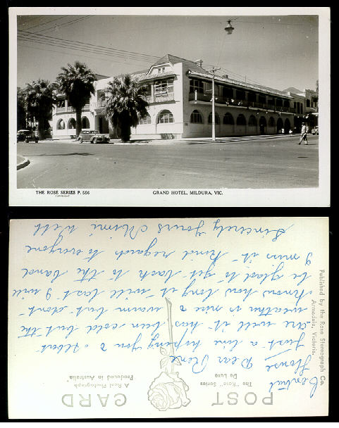 Title (ebay affiliate link): c.1940's Rose Real Photo Postcard - Grand Hotel, Mildura, Victoria, Australia