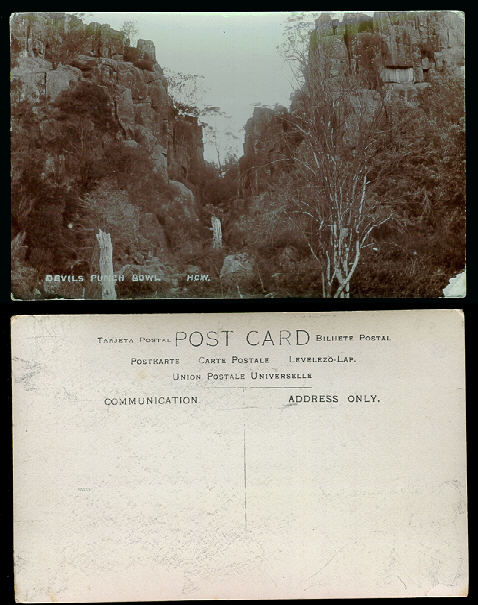 HCW Real Photo Postcard, Devils Punch Bowl, Near Launceston, Tasmania, Australia