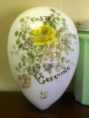 Title (ebay affiliate link): EGG # 8: VERY LARGE ANTIQUE HAND MADE MILK GLASS EASTER EGG HAND PAINTED