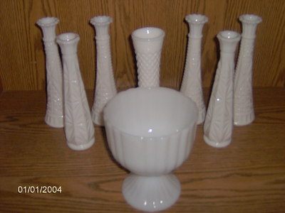 Title (ebay affiliate link): Lot of 8 Vintage White Milk Glass Vases Flowers Weddings Showers Parties More!