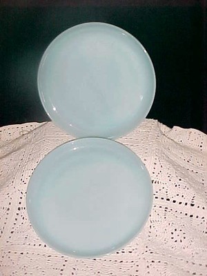 2 Fire King Turquoise 9" Lunch Dinner Plates Delphite Blue Milk Glass Turqoise