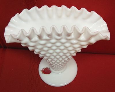 Title (ebay affiliate link): FENTON White Milk Glass Hobnail Footed Fan Vase w/ Label Vintage