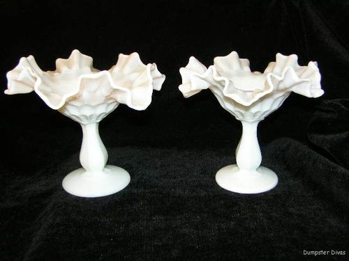 Title (ebay affiliate link): Viintage 1940s Fenton Milk Glass Old Virginia Thumbprint Ruffled Compote - 2
