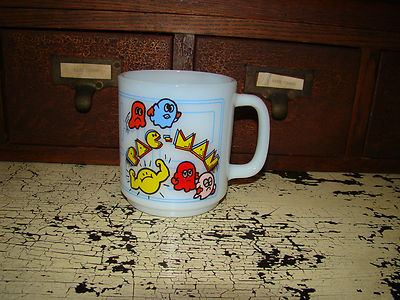 Title (ebay affiliate link): Vintage Glasbake USA Milk Glass Houze Pac Man Game Midway Coffee Cup Mug