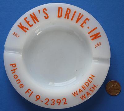1950s Era Warden,Washington Ken's Drive-In restaurant milkglass ashtray-VINTAGE!