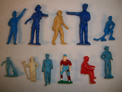 11 VINTAGE PLASTIC & RUBBER FIGURES - FIREMAN, COP, SAILOR, FARMER, PILOT, OTHER