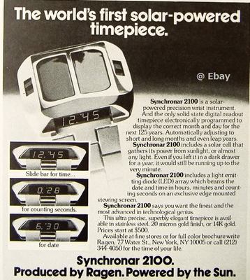 1970s Synchronar 2100 Solar Powered Timepiece Watch Ad