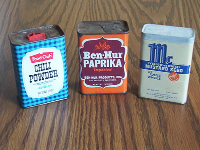 Title (ebay affiliate link): 3 VINTAGE SPICE TINS MC MUSTARD SEED FOOD CLUB CHILI POWDER BEN-HUR PAPRI