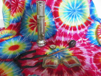 Title (ebay affiliate link): vintage flashlight, measuring tape, goggles, and compess