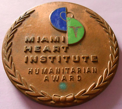 Title (ebay affiliate link): MIAMI HEART INSTITUTE Humanitarian Award Bronze 3" HEAVY Presentation Emblem