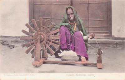 India Vintage Ethnic Postcard JAIPUR Girl Spinning