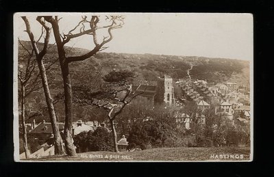 Title (ebay affiliate link): HASTINGS All Saints & East Hill Real Photo. Posted 1909