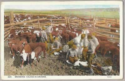 Title (ebay affiliate link): Branding Calves In Arizona. Old Herz Postcard Cows Cowboys Ranch