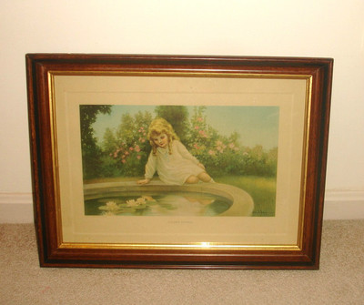 Title (ebay affiliate link): ORIG 1900 LITTLE GIRL SEES HER REFLECTION IN LILY POND, ANTIQUE WALNUT FRAME